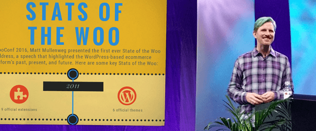 WordPress founder Matt Mullenweg, CEO of WooCommerce-owner Automattic, kicked off WooConf 2016 with his inaugural State of the Woo address. It was a by the numbers look at where WooCommerce has been, where it is, and where it’s going. In this infographic, we present Stats of the Woo from Mullenweg’s talk.
