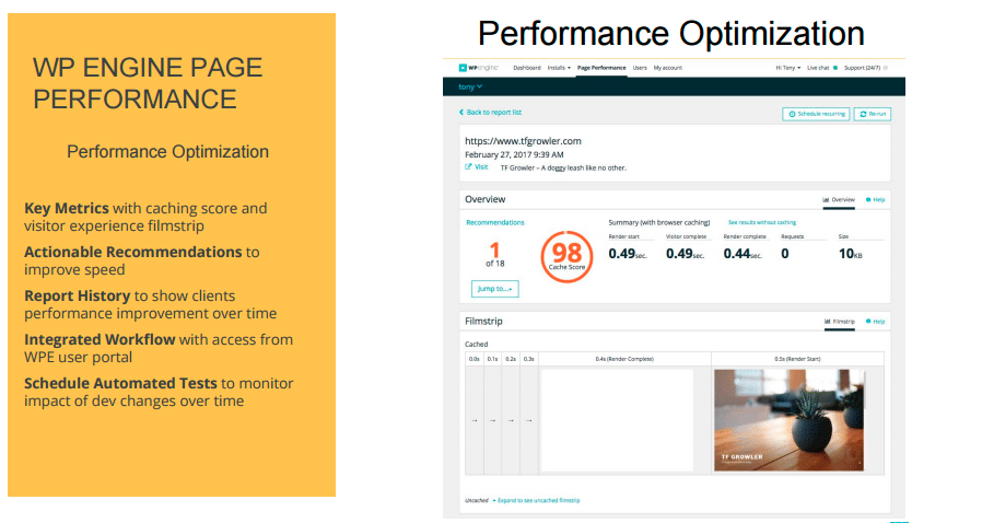 Page Performance is the first web speed performance tool integrated into the user dashboard at WP Engine to give our customers insight to quickly and dramatically improve the speed and performance of their site.