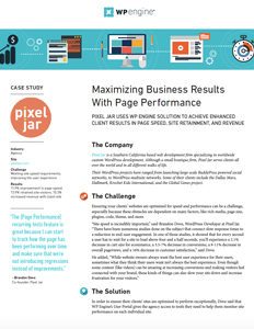 Page Performance is a tool developed by WP Engine that equips you with a detailed analysis of what could be slowing your web pages down. The agency Pixel Jar, a Southern California web development firm, has been using Page Performance to ensure their clients’ sites are optimized to perform exceptionally. In this case study, read about how Pixel Jar has maximized business results for one of their clients using Page Performance.